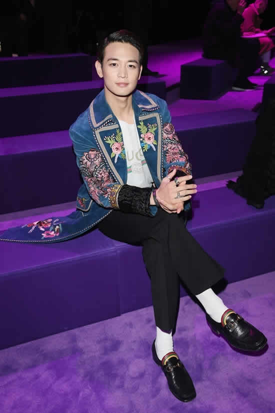 Minho de SHINee fue un invitado especial en el ‘Otoño Invierno 2017-18 Fashion Show’ en Milán, Italia y sigue luciendo muy guapo con esta chaquetacon la misma camisa blanca de Gucci, pero pantalones cortos de corte negro en su lugar. El maquillaje de Minho es limpio y impecable y mantiene su cabello limpio y resbaladizo.