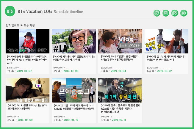 En las imágenes publicadas, las ARMY´s podrán ver En las fotos publicadas, los fanáticos pueden ver las miniaturas de los videos de vacaciones de BTS y la fecha en que serán subidas